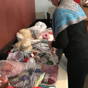 April: Craft Swap & De-Stash–Flat bottom yarn ball demo–Book sale